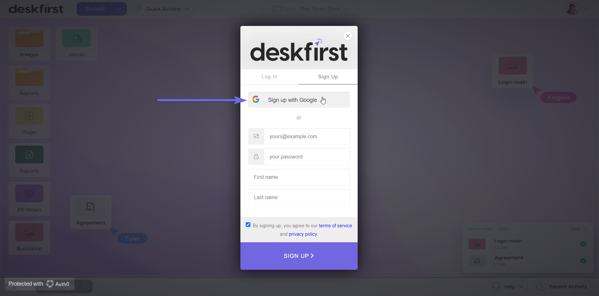 Hi there! In this article, we’re going to cover how you can add a second login method to your Deskfirst account – either your email address or your Google account. Ready? Let’s dive in.