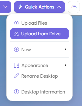You can start using the Google Drive integration from the Quick Actions menu inside any Deskfirst desktop.